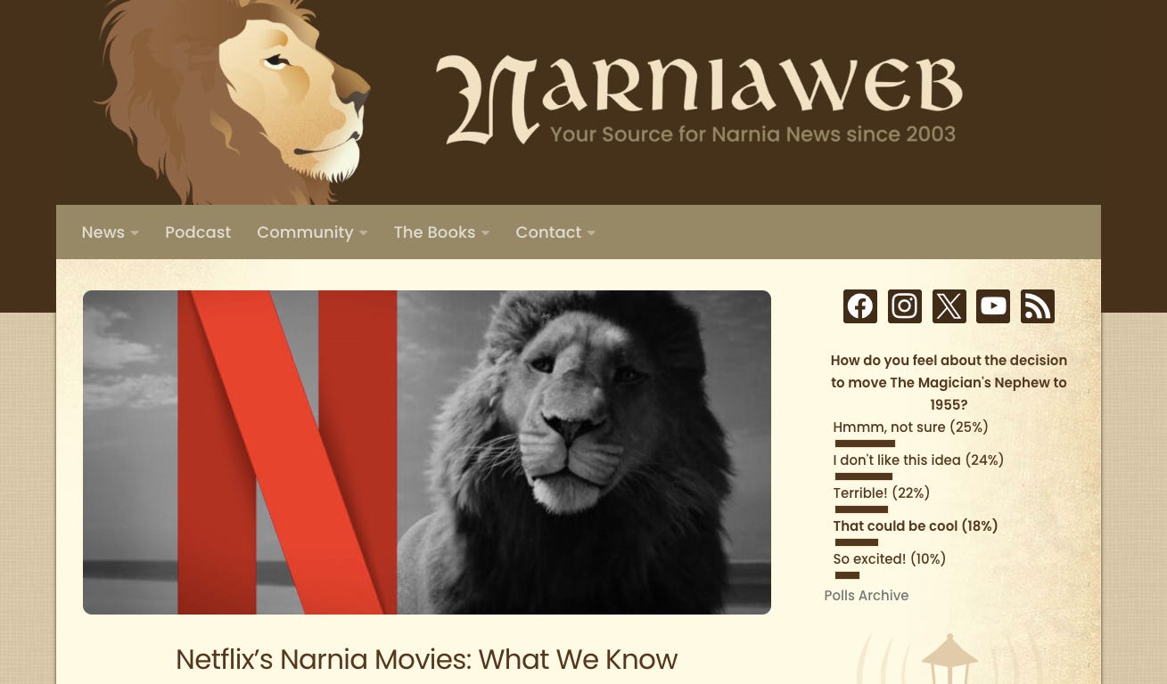 Speaking of Narnia, there’s been a fairly consistent stream of news about the Netflix/Narnia project. You may know that Netflix acquired the rights to all seven books back in 2018. Narnia nerds have been “poking the lion” ever since to find out what’s become of the project.